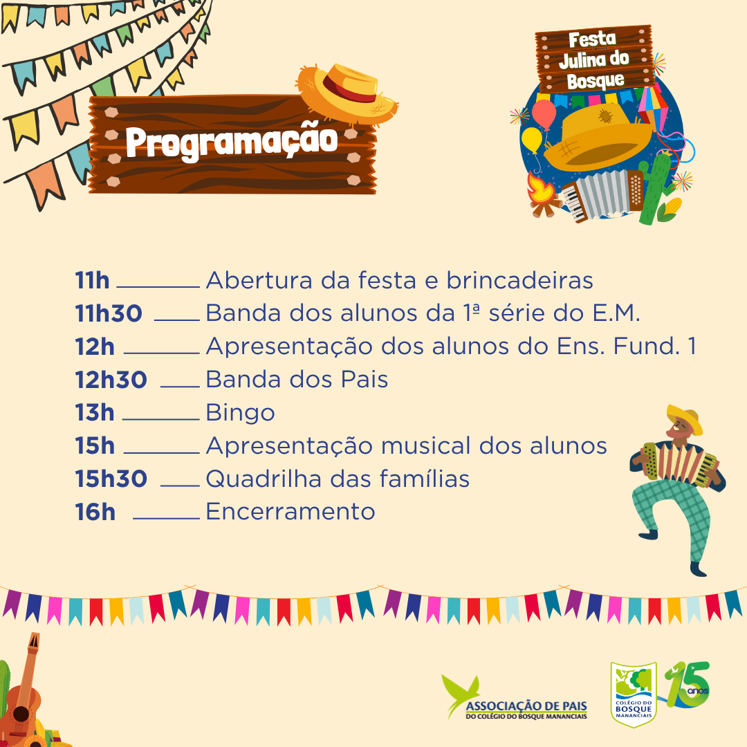 Prepare o chapéu de palha e a roupa xadrez, porque a Festa Julina do Bosque vai ser bão demais, sô!