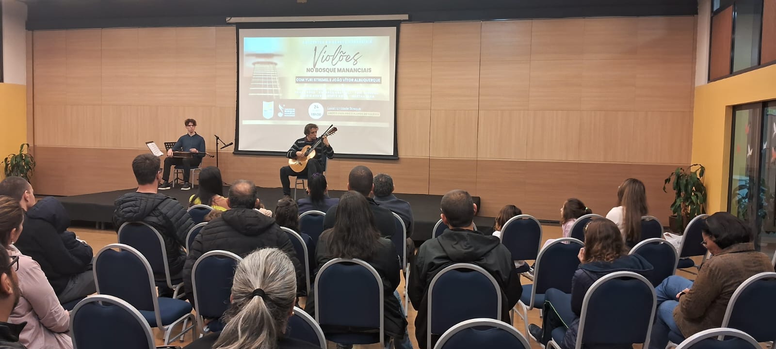 A noite de 24 de abril foi marcada por mais um concerto na Unidade Bosque do Colégio do Bosque Mananciais. O projeto Concertos do Bosque Mananciais realizou sua terceira apresentação do ano com o espetáculo “Violões no Bosque Mananciais”, protagonizado pelos músicos Yuri Stremel e João Vítor Albuquerque.