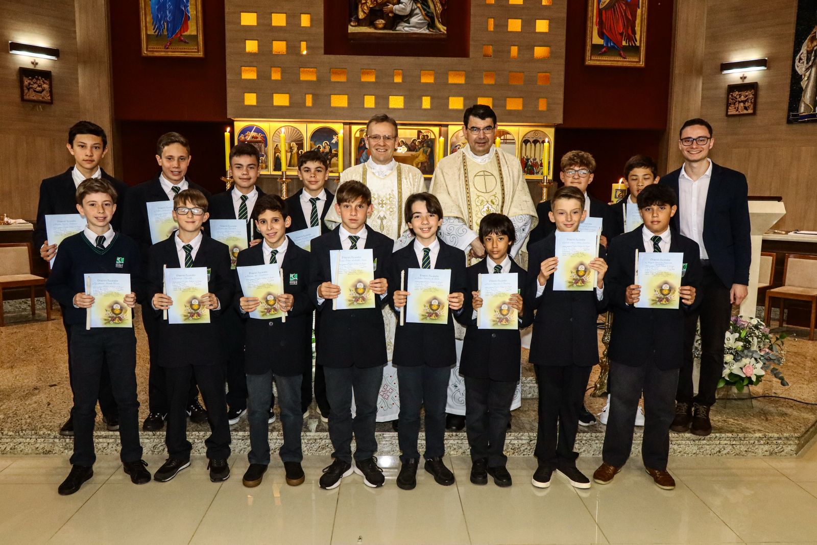 A celebração foi presidida pelos capelães do Colégio do Bosque Mananciais, Padre Marcos Adelino e Padre Alexandre Antosz, e vivida com grande alegria pelos alunos e com emoção por suas famílias e catequistas.