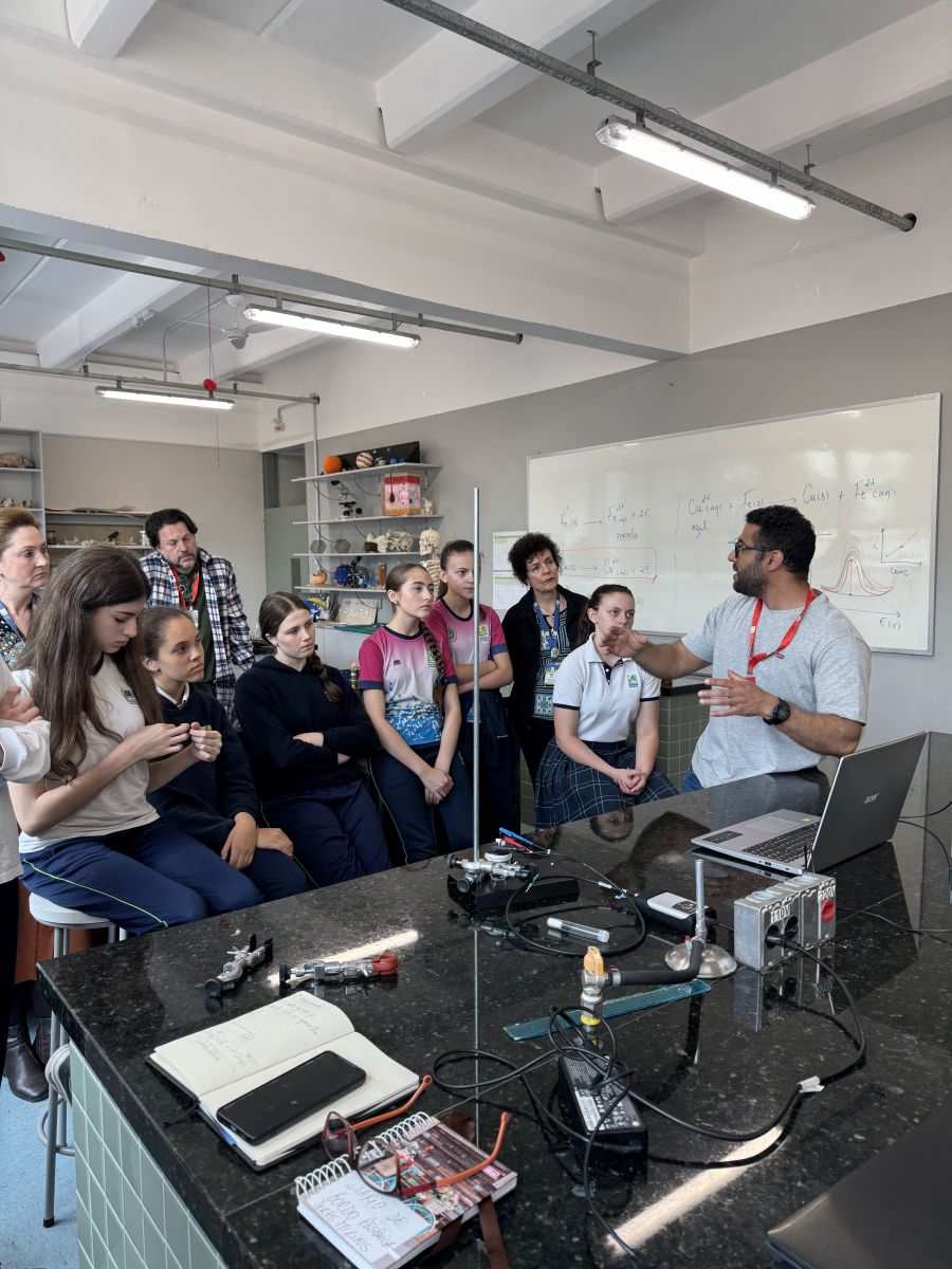 No dia 17 de novembro de 2025, as alunas do projeto Pesquisadoras Mirins da Unidade Mananciais participaram de um encontro formativo de alto nível. A unidade recebeu o Dr. Paulo Silva, pesquisador do Instituto Federal do Paraná (IFPR), para uma aula prática avançada focada em análises eletroquímicas aplicadas ao monitoramento ambiental.