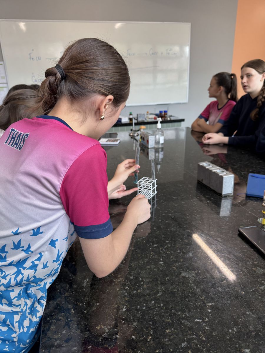 O cenário de estudo foi o Rio Belém, um importante corpo hídrico da nossa região, que atravessa o terreno do Colégio. Sob a orientação do Dr. Paulo, as alunas deixaram a teoria dos livros para mergulhar no rigor do método científico aplicado. A atividade não se restringiu à observação; as alunas colocaram a "mão na massa", realizando cálculos e experimentos de análises químicas, aprofundando conceitos e compreendendo a importância da ciência na preservação e no cuidado com o meio ambiente.