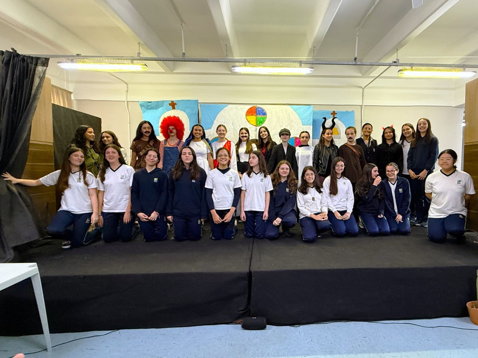 No dia 25 de novembro de 2025, o auditório da Unidade Mananciais transformou-se no cenário de O Auto da Compadecida, de Ariano Suassuna, para uma atividade especial com as alunas do 8º ano do Ensino Fundamental. O objetivo da iniciativa foi aprofundar a compreensão da obra por meio da vivência teatral, permitindo que as alunas interpretassem o texto de forma envolvente e significativa.