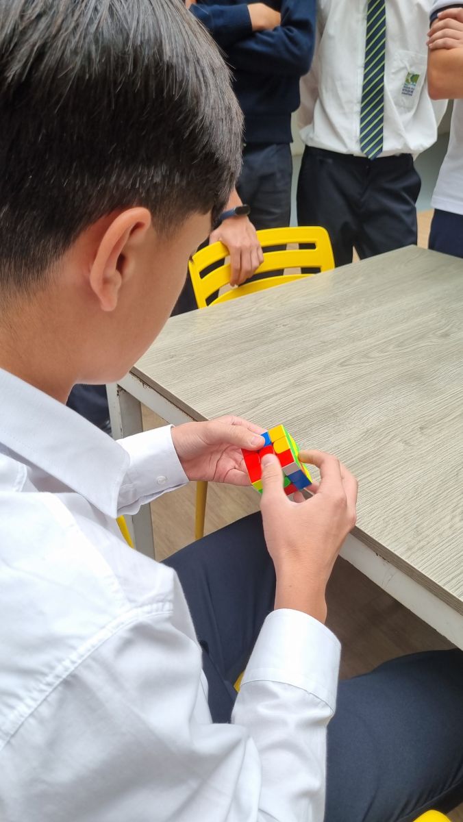 No dia 25 de novembro, os alunos de 8º e 9º ano da Unidade Bosque participaram de uma intensa competição de raciocínio lógico. A disputa envolveu desafios como cubo mágico, tangram e sudoku, exigindo dos participantes alto nível de foco, atenção e persistência para solucionar os problemas propostos sob pressão de tempo.